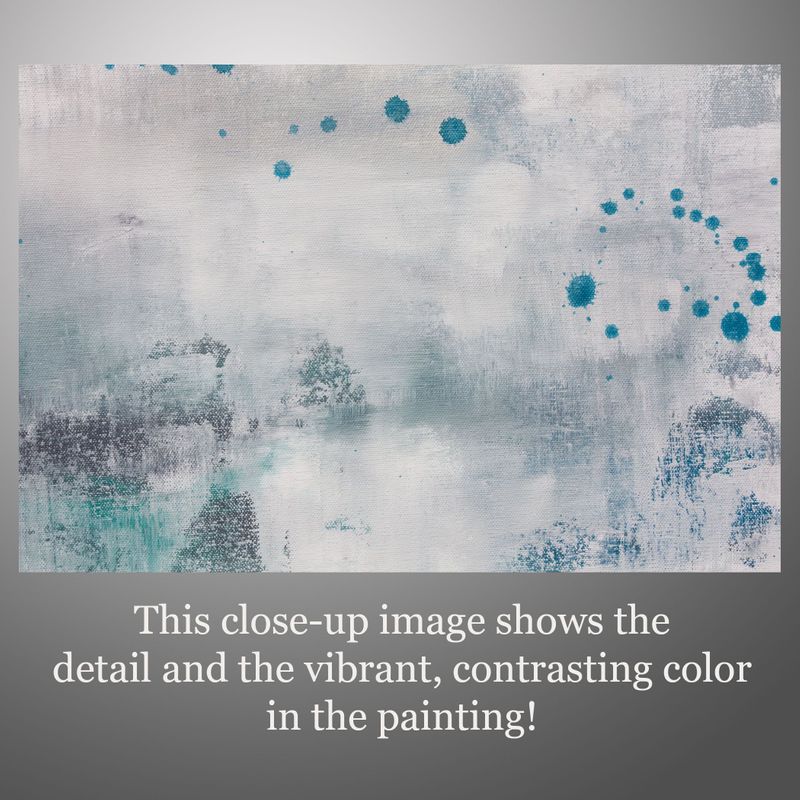 Sea Spray 6 is an original painting, created with acrylic paint on gallery-wrapped canvas. It has a width of 24 inches and a height of 24 inches with a depth of 1.5 inches (24x24x1.5). The colors used in the painting are white, gray, off-white, teal, and blue, and the painting continues onto the edges of the canvas. An archival, UV resistant, gloss varnish has been applied to protect the surface of the painting. The painting will be signed on the front, unless otherwise requested, and signed and dated on the back of the canvas. A certificate of authenticity will be included with the shipment. Thank you! Hilary Winfield Fine Art © ALL RIGHTS RESERVED