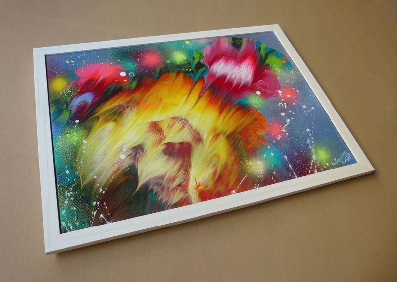 Abstract Painting on canvas/ Silver Dreams In this vivid acrylic creation, I aimed to capture the essence of an awakened dream, a burst of emotions flowing freely. Each stroke and color choice echoes a whisper of joy, and the dance of light and dark shades portrays life's beautiful complexity. As the colors merge and overlap, they invite the observer into a realm of imagination and possibility, promising to infuse any space with dynamic energy and a touch of the enigmatic. -------------- IMPORTANT DETAILS: *Unframed artwork: 14.48" x 20.15" x 0.8" ....... (36,8 x 51,2 x 2 cm) *Framed size: 15.66" x 21.33" x 1.2" ....... (39,8 x 54,2 x 3 cm ) * Stretched canvas, acrylic paints, varnish, framed * Signed on the front side and accompanied by a Certificate of Authenticity. * Ready to hang! ---------------------------- SHIPPING: The painting will be wrapped carefully for shipment around the world to ensure safe arrival. * tracking number