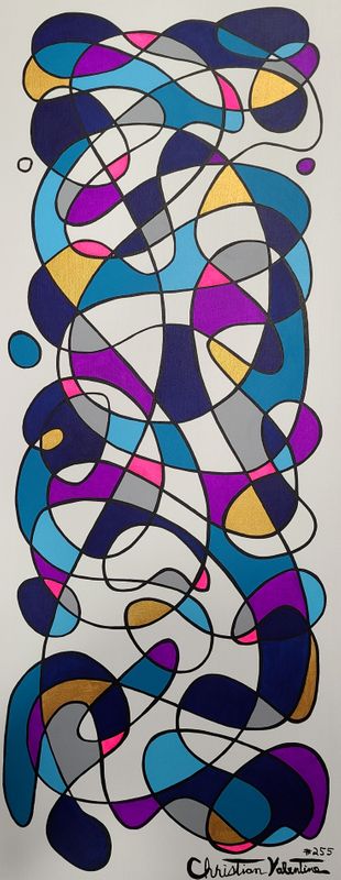 A celebration of form and color, a dynamic interplay of curvilinear shapes in a striking palette. This painting is a visual representation of life’s fluidity, each intertwining line and bold color symbolizing the constant motion of our journey. Crafted with vibrant hues, This artwork by Christian Valentine is a testament to the beauty of change and the harmonious chaos found within it. Color at play.Part of my "interactive" series. Hand painted and varnished for protection and beauty in the central coast of California. I truly hope you enjoy it and thank you for supporting the arts!